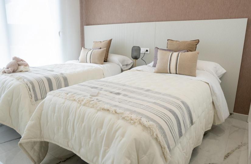 Bungalows: Units op de begane grond met een privétuin of op de bovenste verdieping met een solarium. Alle bungalows hebben twee slaapkamers, twee badkamers, een parkeerplaats en een berging, gelegen rond een centrale gemeenschappelijke ruimte met een zwembad en aangelegde tuinen.