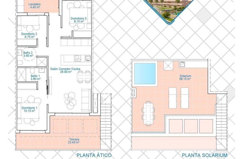 Afstanden naar belangrijke puntenLo Romero Golfbaan - 5 km (10 minuten rijden).Luchthaven Corvera (Murcia) - 40 km (40 minuten rijden).Vliegveld Alicante - 55 km (55 minuten met de auto).Winkelcentrum Zenia Boulevard - 15 km (15 minuten met de auto).Jachthaven Torre de la Horadada - 3 km (5 minuten met de auto).