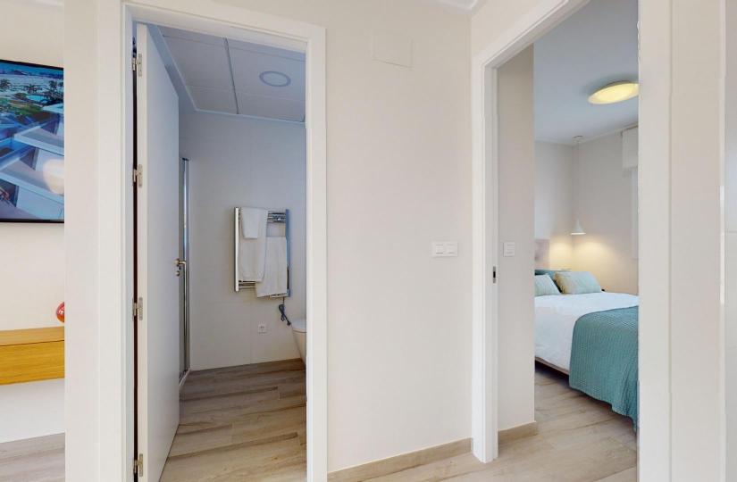 Pre-installatie van gekanaliseerde airconditioning.Aluminium buitenschrijnwerk met thermische onderbreking en dubbele beglazing.Versterkte toegangsdeur voor meer veiligheid.Aerothermisch systeem voor efficiënte productie van warm water.Ingebouwde kasten met LED-verlichting.Badkamermeubels en schermen inbegrepen.
