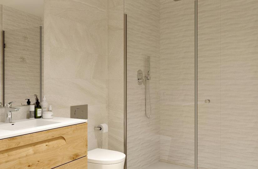 Deze appartementen zijn gebouwd met het oog op energie-efficiëntie en zijn voorzien van hoogwaardige aluminium buitenschrijnwerk met thermische onderbrekingstechnologie en automatische gemotoriseerde rolluiken. Elke eenheid is vooraf geïnstalleerd voor klimaatbeheersing door middel van airconditioning en verwarming, waardoor het hele jaar door comfort wordt gegarandeerd. Voor extra veiligheid zijn alle toegangsdeuren gepantserd met veilige sloten en zijn de binnendeuren afgewerkt met witte lak. Bovendien is elke unit uitgerust met een energiebesparend aerothermisch systeem voor warm water, wat het energieverbruik aanzienlijk vermindert.